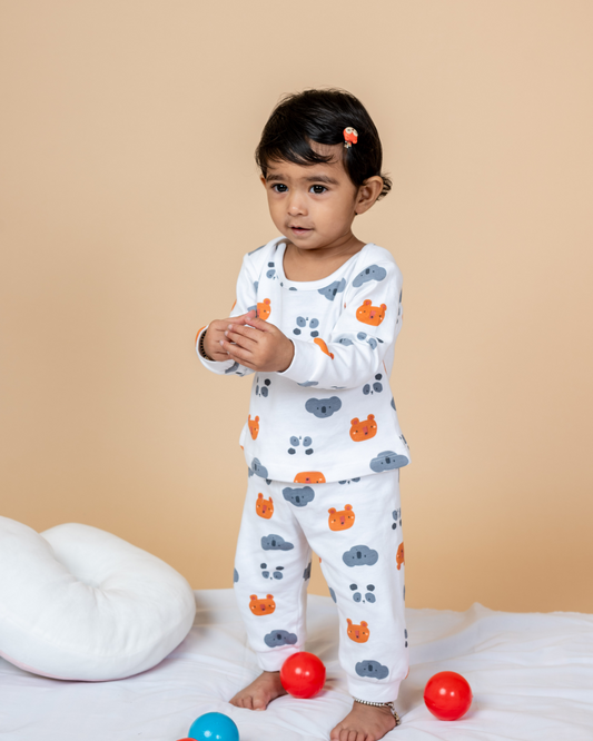 Cute Bear Print Full Sleeves Top with Pant Set