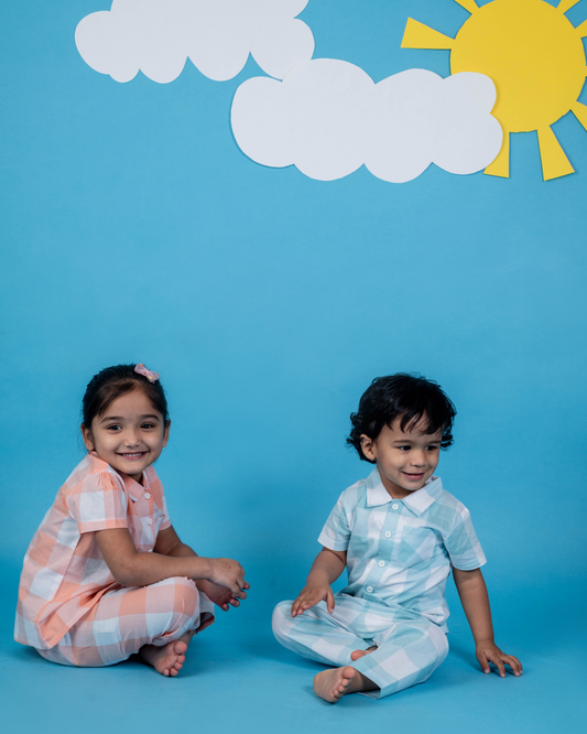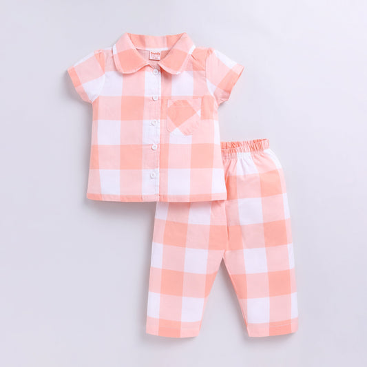 Checks Design Nightsuit Set - Peach
