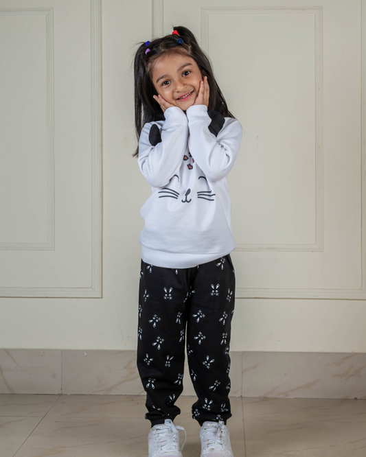 Sold outCat Print Sweat Shirt with Joggers