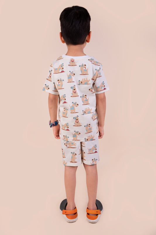 Cute dog print top with shorts set