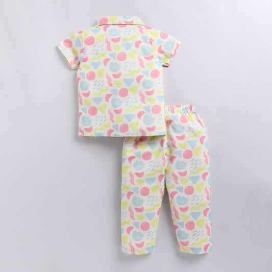 Colorful Abstract Print Linen Night Suit Set – Front Open Shirt & Pajama