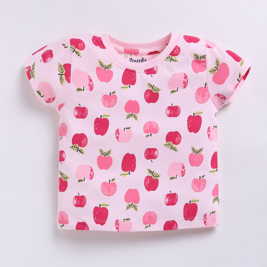 Cute Apple Print Nightsuit Set - Pink