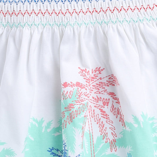 Cool Tropical Print White Smocking Frock