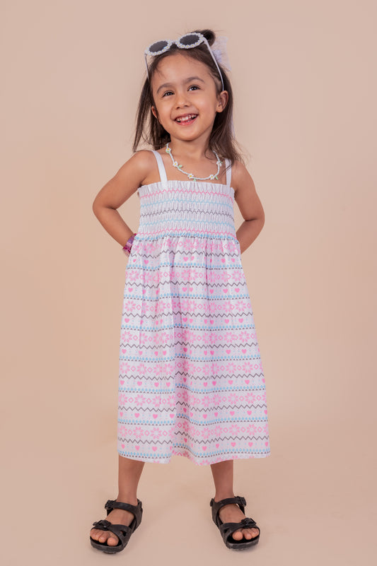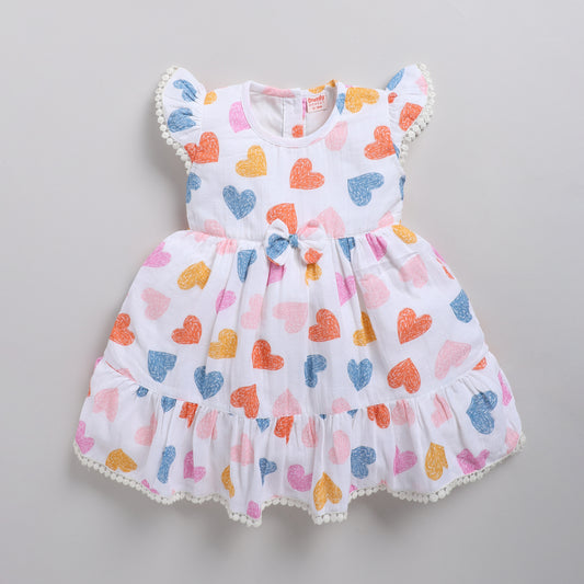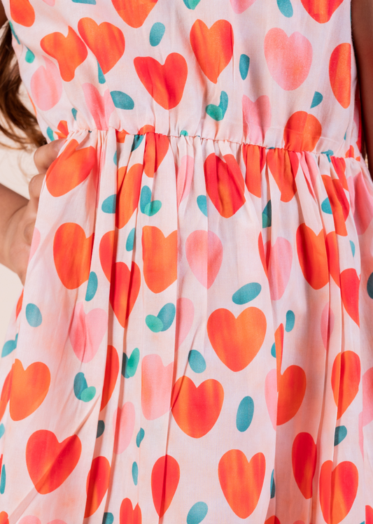 Heart Print Summer Frock with Matching Hairband | Cherry Red