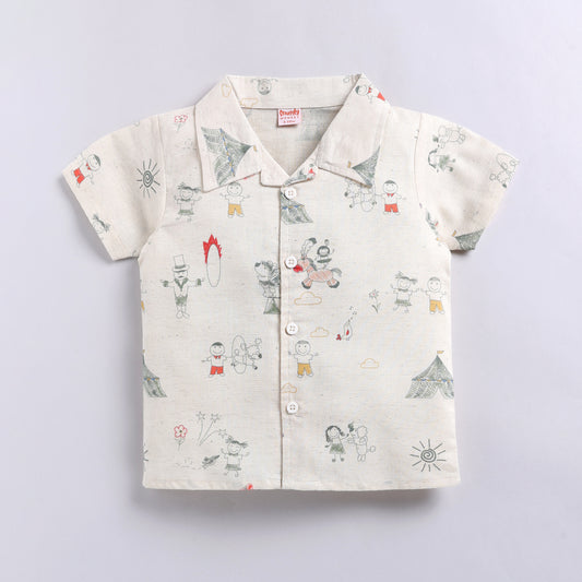 Linen Night Suit Set – Front Open Shirt & Pajama | Carnival Print