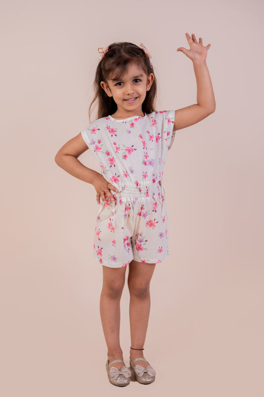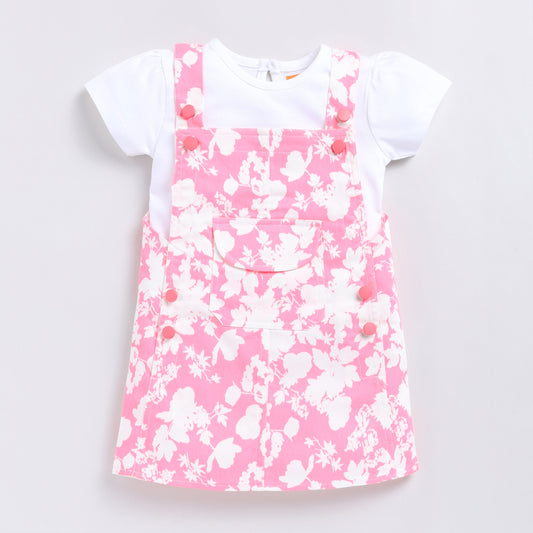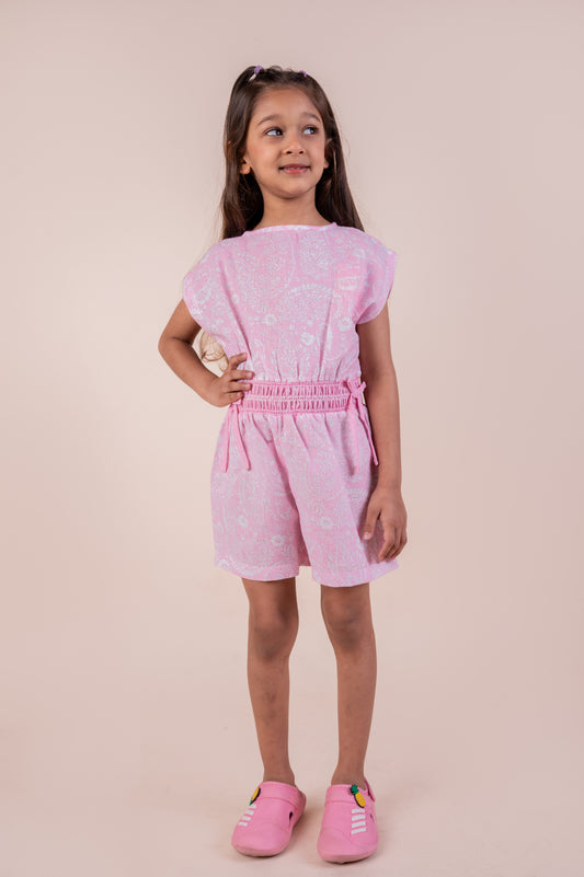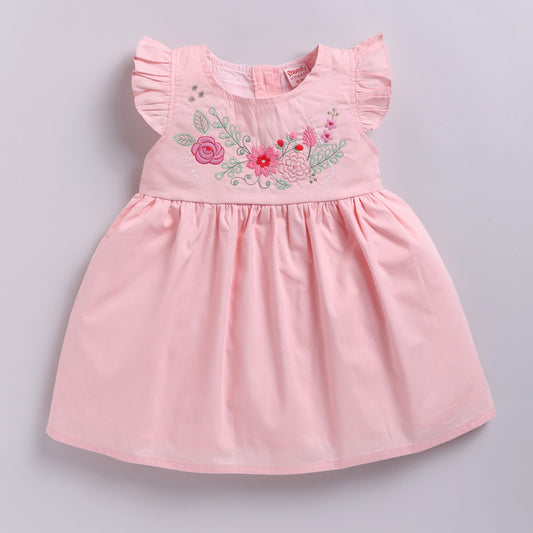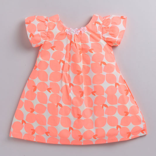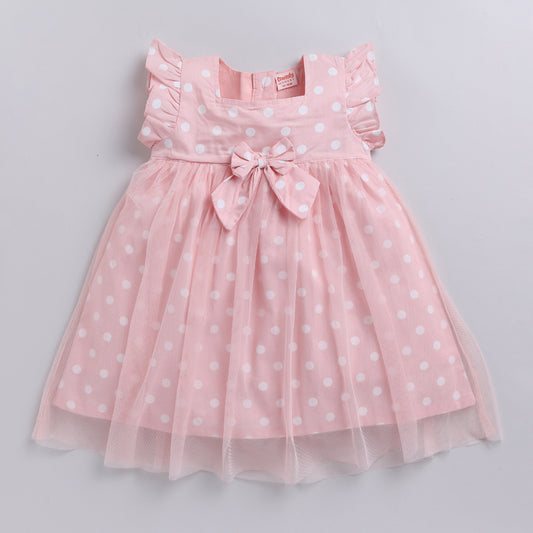 Pastel Print Cotton Frock with Double Flare Sleeves - Pink