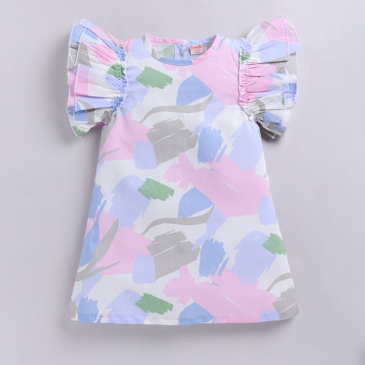 Pastel Print Cotton Frock with Double Flare Sleeves