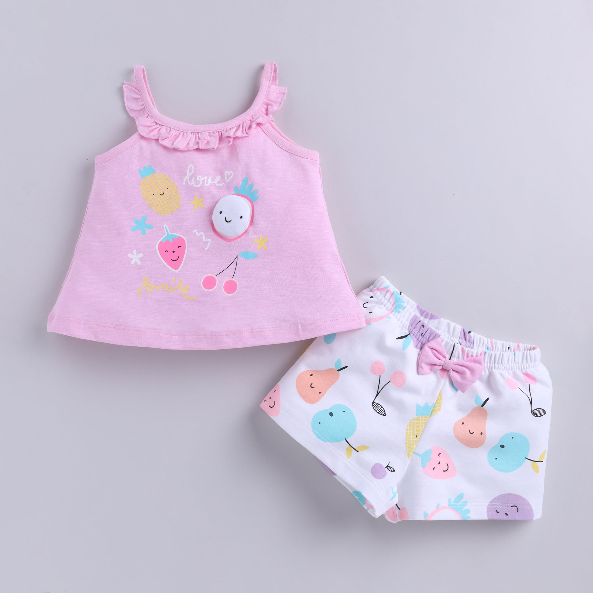 Crafted with quality materials, this baby girl's pink top and shorts set is not only fashionable but also durable. It is easy to care for, making it a practical choice for busy parents. The set is available in various sizes, ensuring the perfect fit for your growing baby. Dress your little one in this charming outfit and watch her shine with cuteness and style!