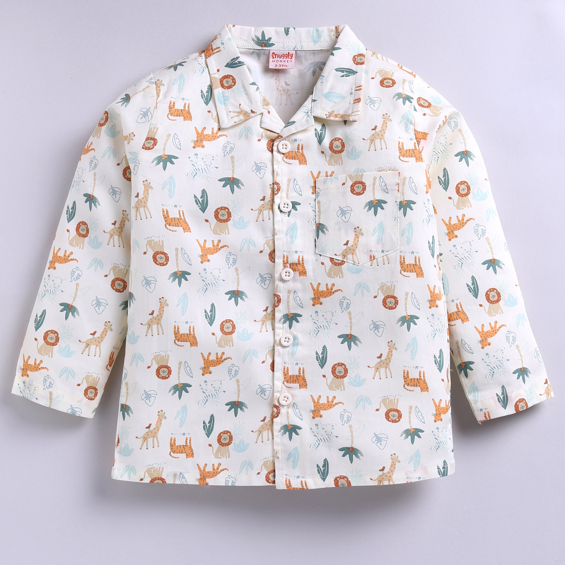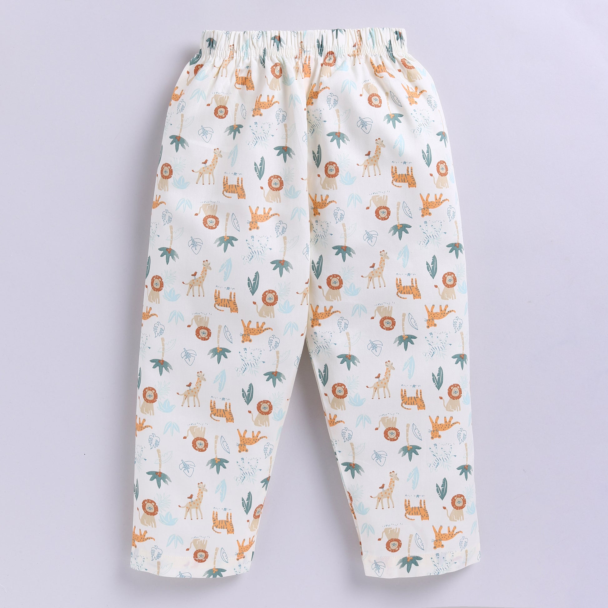 Adorable Jungle Print – Features lions, giraffes, tigers, and palm trees for a fun bedtime look.