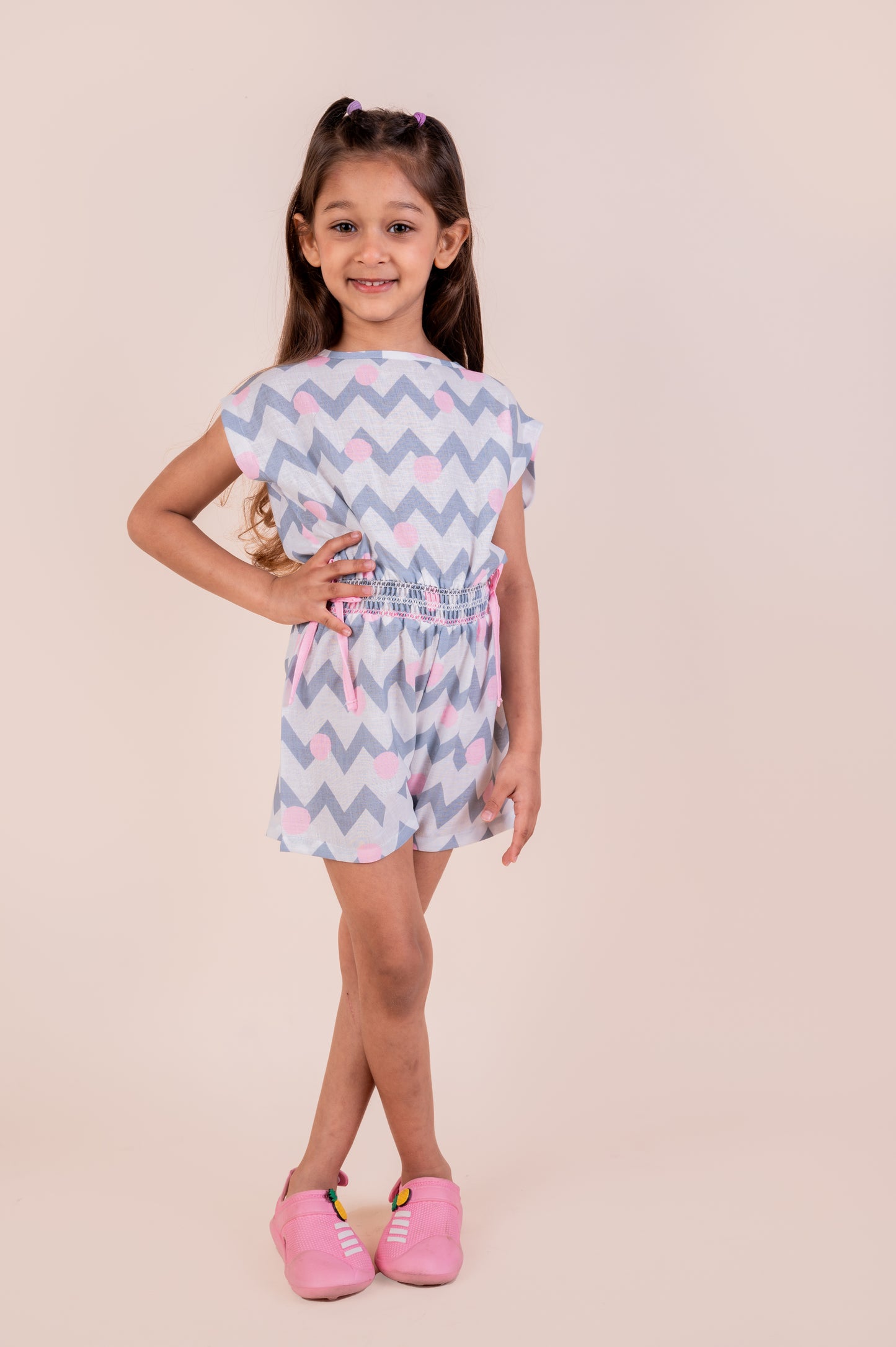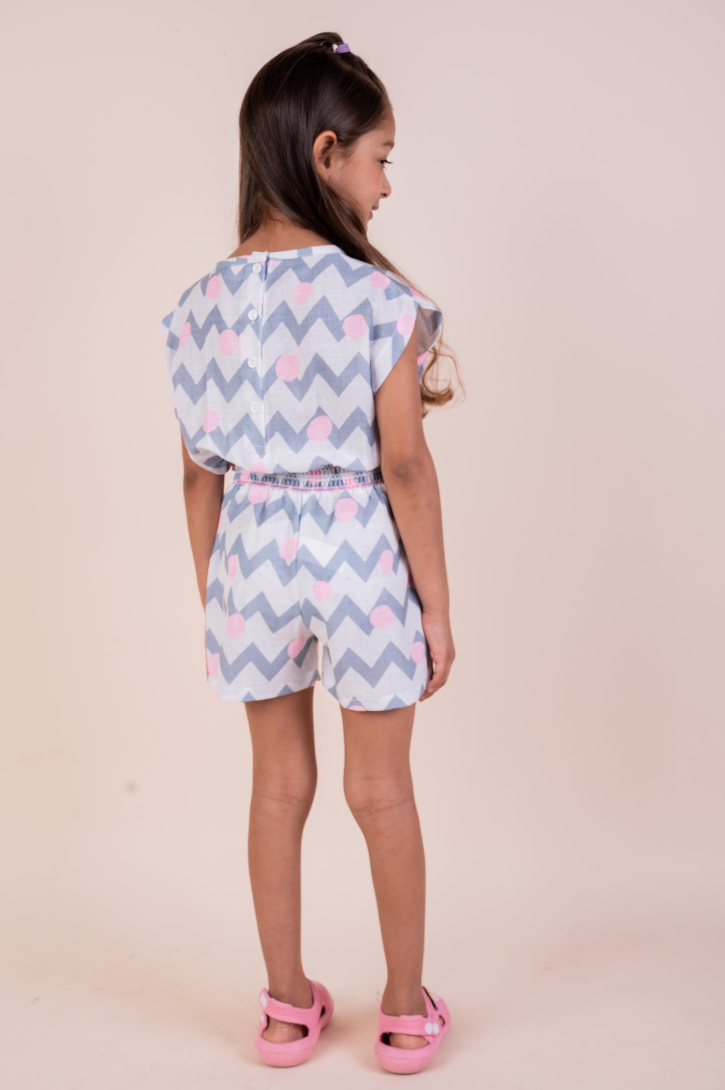 Dress your little one in style with this adorable baby girl's white and pink chevron romper, featuring charming pink polka dots. Crafted from soft, breathable cotton, this jumpsuit ensures all-day comfort while keeping your baby looking trendy and cute. The playful chevron pattern adds a modern touch, making it perfect for any occasion, from playdates to family gatherings.