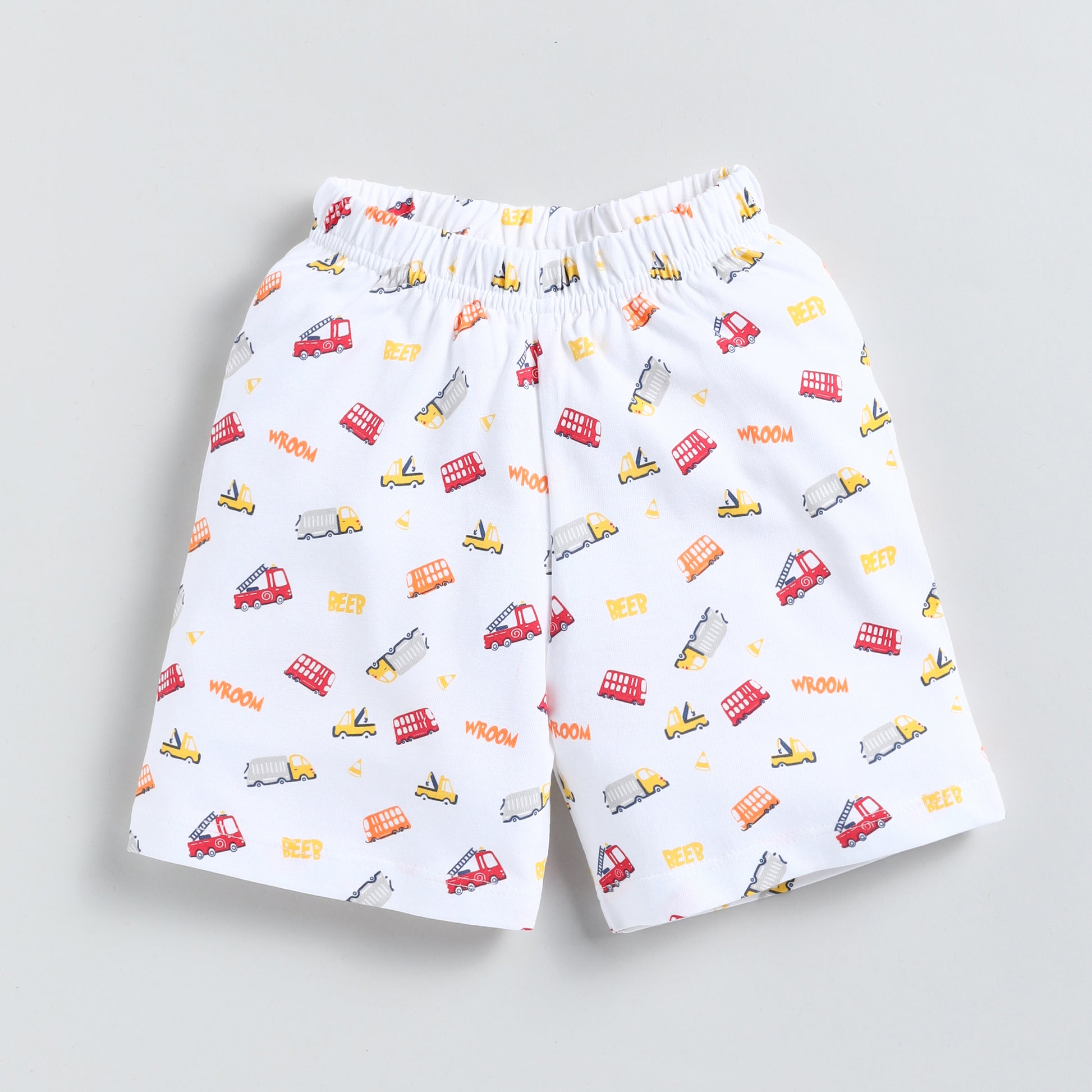 Our Car Print Half-Sleeves T-shirt and Shorts set features a vibrant car print, adding a playful touch to your child's look.